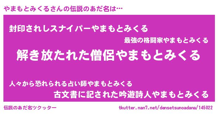 | ヒーロー風カッコイイあだ名 | 『魔戒騎士ヤマ』『ネオヤマモトミクル』 |