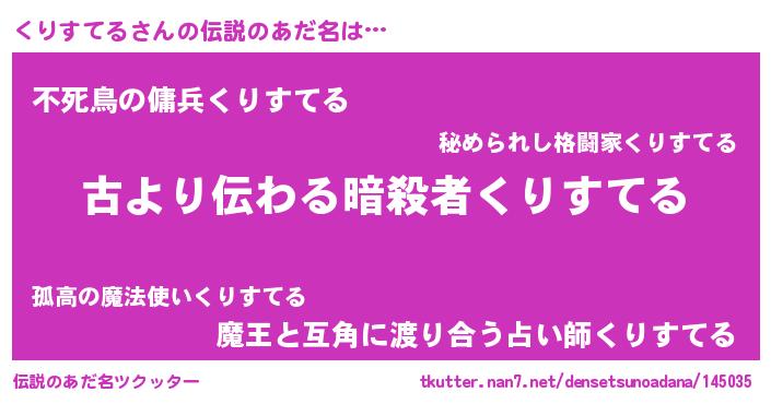 | 意味不明あだ名 | 『永久保存くりすてる』『自称くりすてる』 |