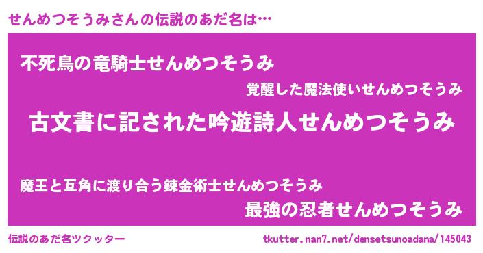 | 意味不明あだ名 | 『住所不定無職せんめつそうみ(9歳)』 |