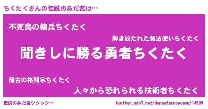 | ヘコむあだ名 | 『ちくたく(震え声)』『ちくふぇ~』 |