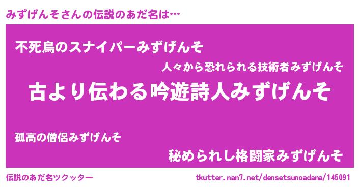 | ヒーロー風カッコイイあだ名 | 『ネオミズゲンソ』『仮面ミズダー』 |