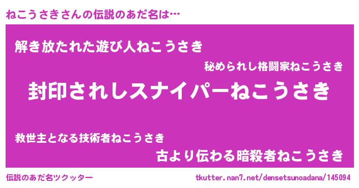 | 意味不明あだ名 | 『住所不定無職ねこうさき(81歳)』 |
