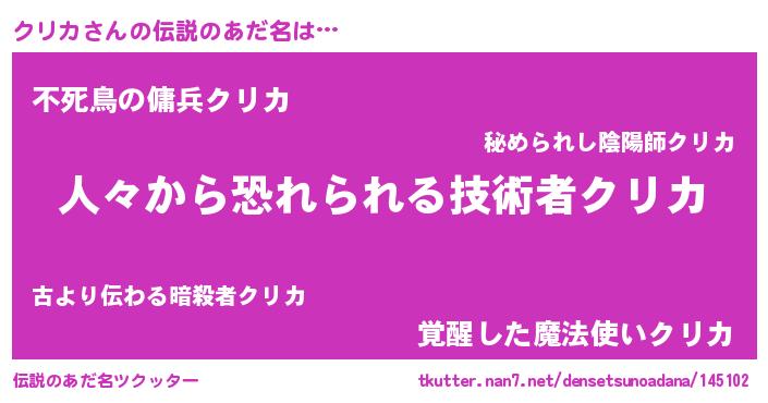 | ヒーロー風カッコイイあだ名 | 『正義の使者クリカ』『最強戦士クリカ』 |