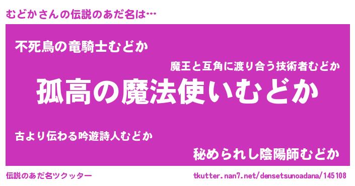 | 意味不明あだ名 | 『とにかく怪しいむどか』『自称むどか』 |