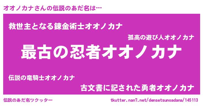 | 女子向けラノベタイトル風あだ名 | 『乙女ゲームの破滅フラグしかない悪役オオノカナに転生してしまった…』 |