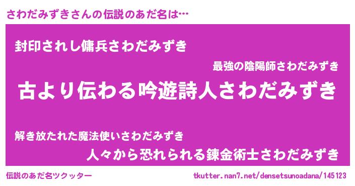 | 意味不明あだ名 | 『住所不定無職さわだみずき(11歳)』 |