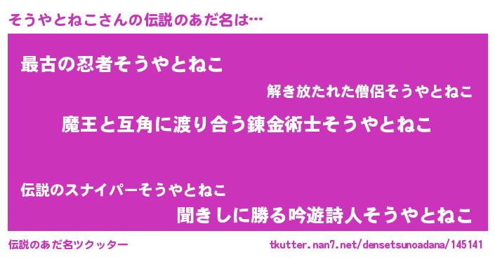 | 女子向けラノベタイトル風あだ名 | 『そうやとねこ恋絵巻』 |