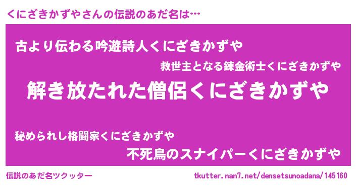 | ヒーロー風カッコイイあだ名 | 『魔戒騎士クニ』『ネオクニザキカズヤ』 |