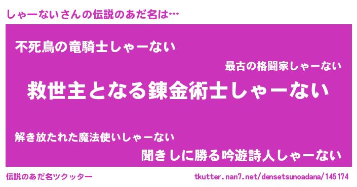 | 胡散臭い通販商品みたいなあだ名 | 『モンドセレクションを受賞した隕石のかけら…その名も「しゃーない」』 |
