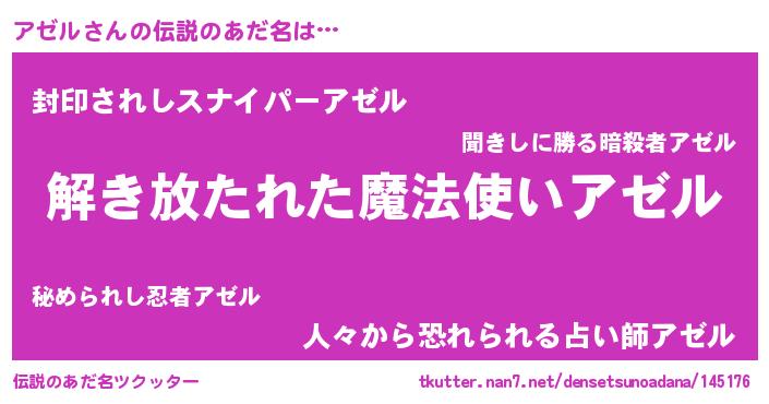 | 女子向けラノベタイトル風あだ名 | 『闇のアゼル』『アゼル様がみてる』 |