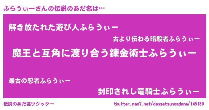| 女子向けラノベタイトル風あだ名 | 『ふらうぃー恋絵巻』『闇のふらうぃー』 |