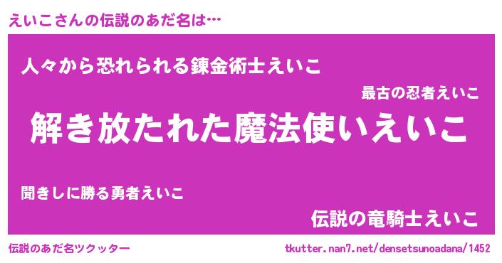 | ヒーロー風カッコイイあだ名 | 『魔戒騎士エイ』『正義の使者えいこ』 |