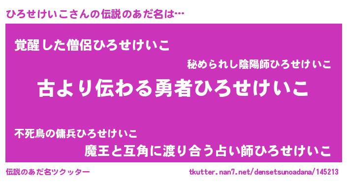 | ヒーロー風カッコイイあだ名 | 『ネオヒロセケイコ』『天弓騎士ヒロ』 |