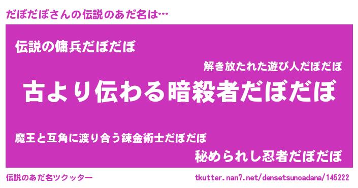 | 意味不明あだ名 | 『永久保存だぼだぼ』『ペロリンだぼだぼ』 |