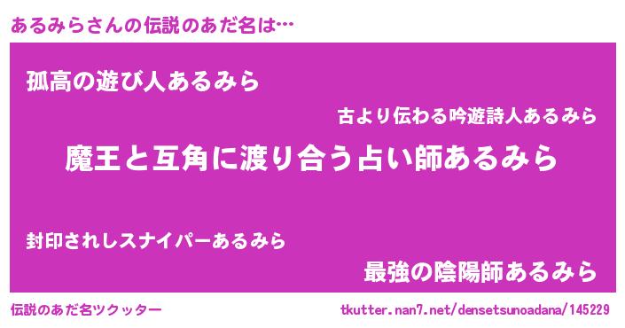 | 女子向けラノベタイトル風あだ名 | 『あるみら恋絵巻』『あるみらの婚約者』 |