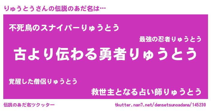 | ヒーロー風カッコイイあだ名 | 『ネオリュウトウ』『スーパーリュウトウ』 |