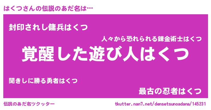 | ファンタジー風あだ名 | 『ゼハクトゥ』『ヴァルハクーナ』 |