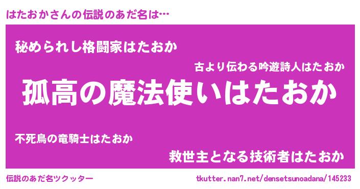 | ヒーロー風カッコイイあだ名 | 『黄金騎士ハタ』『ウルトラはたおかマン』 |