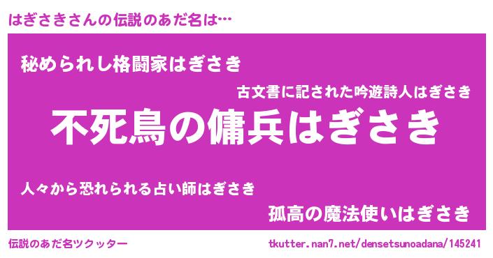 | 女子向けラノベタイトル風あだ名 | 『はぎさき姫と円卓の騎士』 |