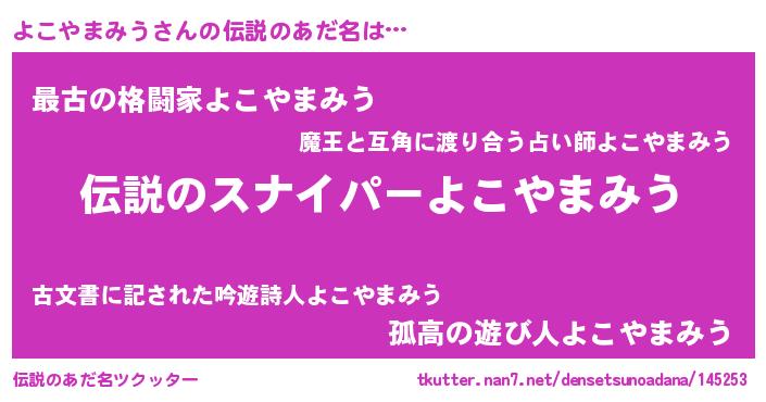 | 胡散臭い通販商品みたいなあだ名 | 『必ず成功する霊験あらたかなお札…その名も「よこやまみう」』 |