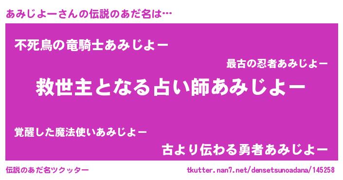 | 女子向けラノベタイトル風あだ名 | 『死神あみじよーの再婚』 |