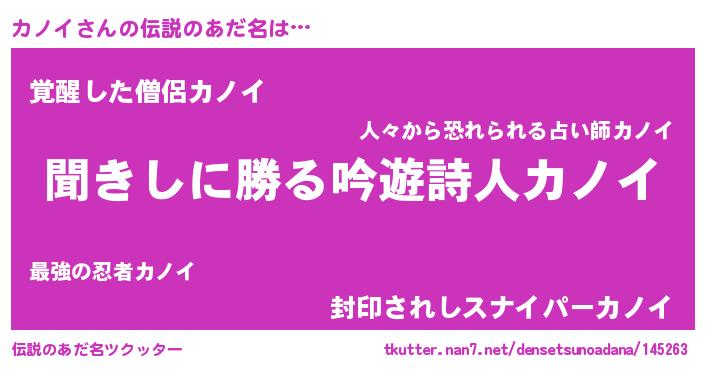 | ヒーロー風カッコイイあだ名 | 『仮面カノダー』『ネオカノイ』 |