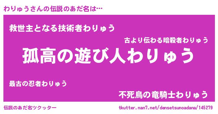 | 意味不明あだ名 | 『住所不定無職わりゅう(74歳)』 |