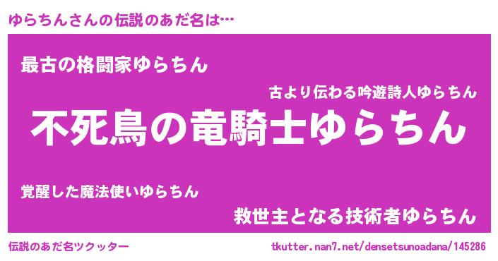 | ヒーロー風カッコイイあだ名 | 『スーパーユラチン』『仮面ユラダー』 |