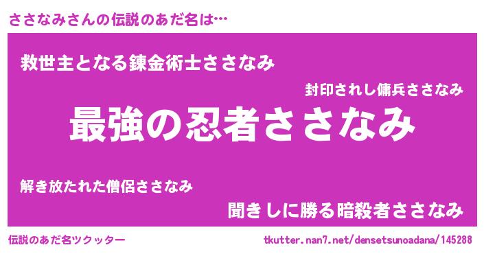 | 意味不明あだ名 | 『ささなみフォーエバー』『自称ささなみ』 |