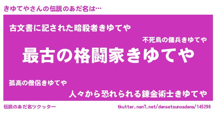 | 意味不明あだ名 | 『きゆてやフォーエバー』『自称きゆてや』 |