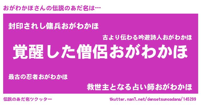 | 意味不明あだ名 | 『とにかく怪しいおがわかほ』 |