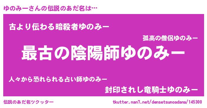 | 意味不明あだ名 | 『ゆのみーフォーエバー』『自称ゆのみー』 |