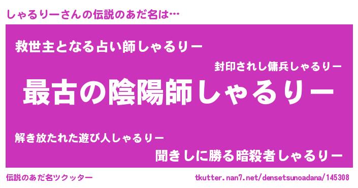 | ファンタジー風あだ名 | 『エターナルシャルリーー』『ゼシャトゥ』 |