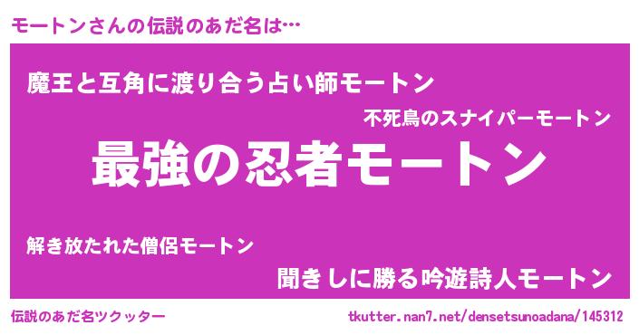 | ファンタジー風あだ名 | 『エターナルモートンー』『ゼモートゥ』 |