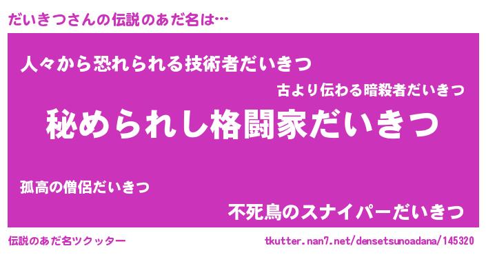 | ヒーロー風カッコイイあだ名 | 『ウルトラだいきつマン』『仮面ダイダー』 |