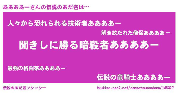 | 意味不明あだ名 | 『永久保存ああああー』 |
