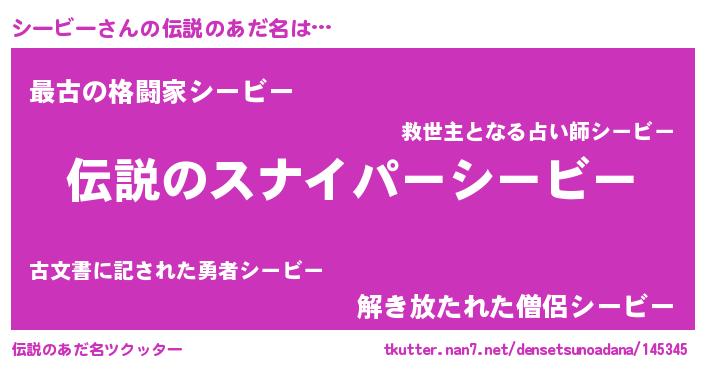 | 意味不明あだ名 | 『住所不定無職シービー(95歳)』 |