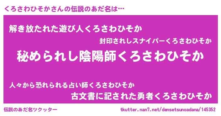 | 男性向けラノベタイトル風あだ名 | 『魔法科高校のくろさわひそか』 |