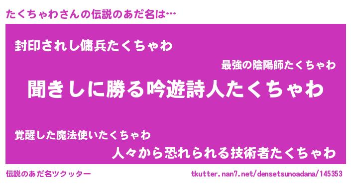 | ヒーロー風カッコイイあだ名 | 『ネオタクチャワ』『スーパータクチャワ』 |
