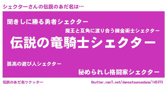| 男性向けラノベタイトル風あだ名 | 『シェクターの憂鬱』 |