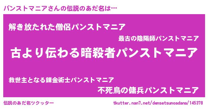| 胡散臭い通販商品みたいなあだ名 | 『来世でも幸せになれる健康食品…その名も「パンストマニア」』 |