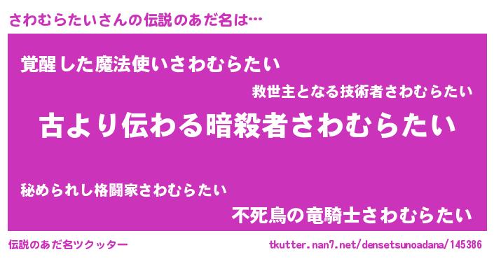 | 男性向けラノベタイトル風あだ名 | 『転生したらさわむらたいだった件』 |