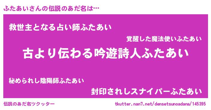 | ヒーロー風カッコイイあだ名 | 『ネオフタアイ』『愛の使者ふたあい』 |