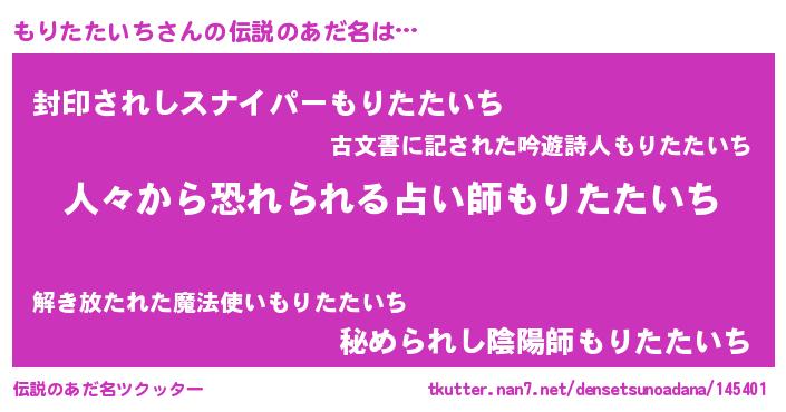| ヒーロー風カッコイイあだ名 | 『友情の使者もりたたいち』 |