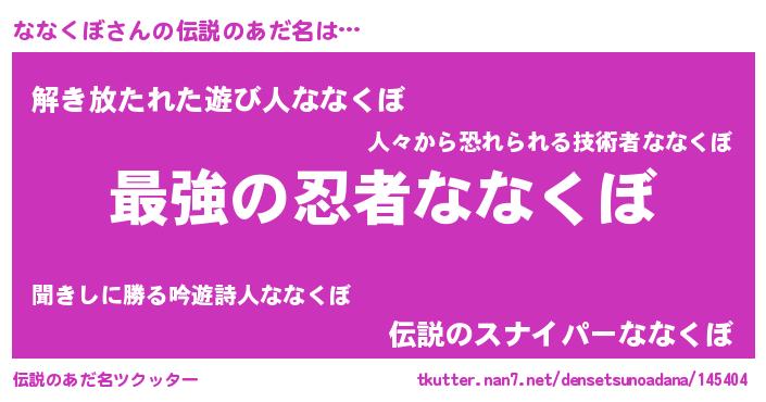 | ヒーロー風カッコイイあだ名 | 『ウルトラななくぼマン』『幻影騎士ナナ』 |