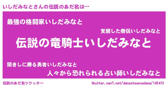 | 胡散臭い通販商品みたいなあだ名 | 『必ず成功するブレスレット…その名も「いしだみなと」』 |