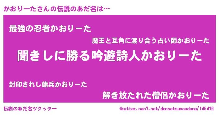 | 欧米人風あだ名 | 『アンジェラ・かおりーた』 |