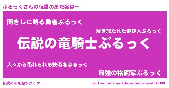 | 意味不明あだ名 | 『ペロリンぶるっく』『自称ぶるっく』 |