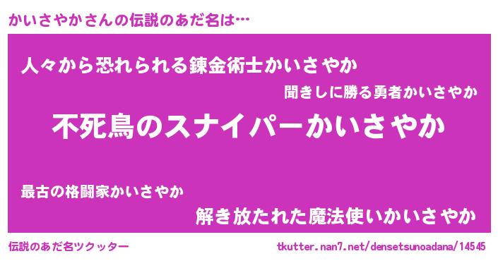 | 男性向けラノベタイトル風あだ名 | 『カイサヤカアートオンライン』 |