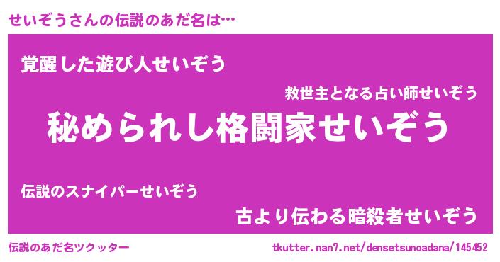 | 女子向けラノベタイトル風あだ名 | 『せいぞうの雑貨屋さん』 |